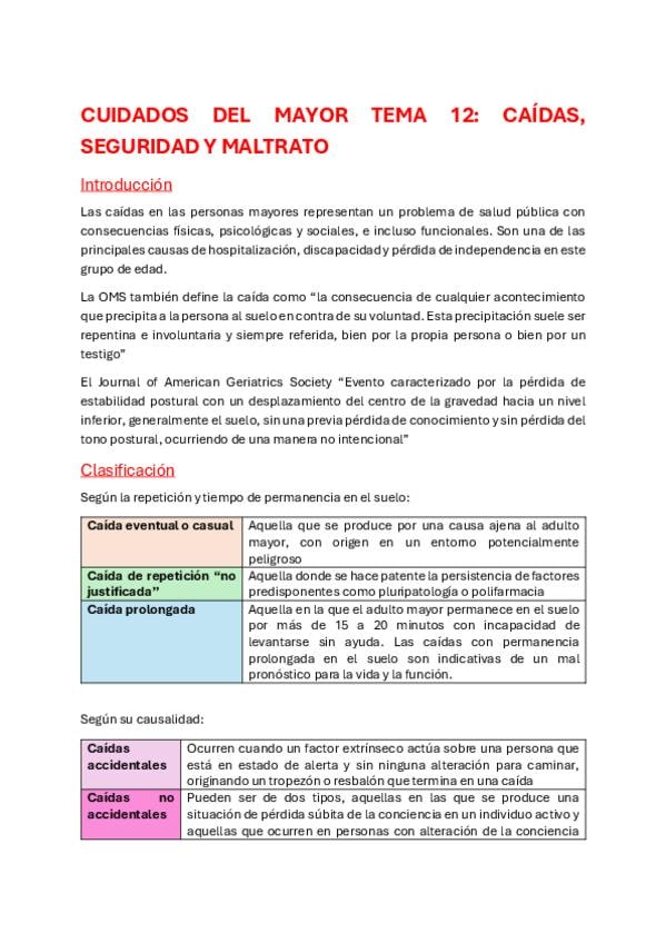 APUNTES CUIDADOS DEL MAYOR TEMA 12: CAIDAS Y MALATRATO, resumido, tipos de caidas y de maltrato, con fotos y colores