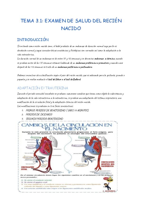 Apuntes de pediatría correspondientes al tema 3.1: examen de salud del recién nacido 25/26