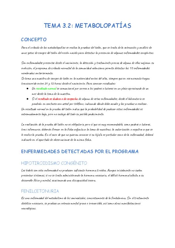 Apuntes pediatría tema 3.2 corresponde a metabolopatías 25/26