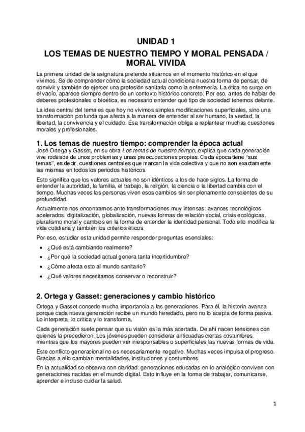 Resumen de las Unidades de la 1 a la 10 del Temario de Moral Social Deontología de Alzira.