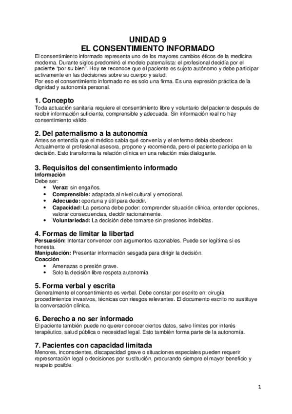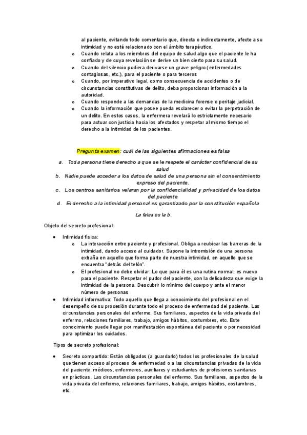 Apuntes tema 5 moral, social y deontología: INFORMACIÓN AL PACIENTE, CONSENTIMIENTO INFORMADO E HISTORIA CLÍNICA, respuestas dadas en clase