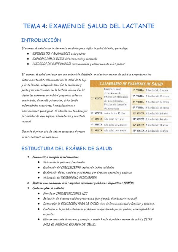 Apuntes pediatría correspondientes al tema 4 examen del lactante 25/26