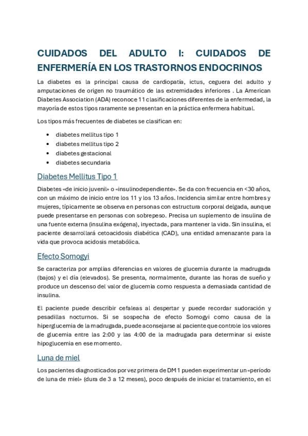 Apuntes cuidados del Adulto I: pacientes con problema endocrinológicos parte 1, con fotos y expliación de clase