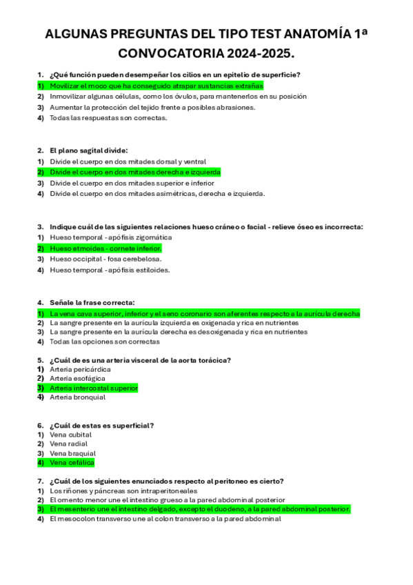 CONTIENE: 20preguntas tipo test (hay 50 en el examen), las láminas y las preguntas de desarrollo.