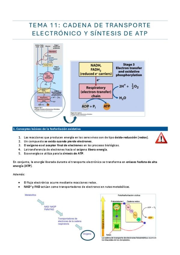 Tema 11 (CADENA DE TRANSPORTE ELECTRÓNICO Y SÍNTESIS DE ATP) - bioquímica - año 25/26