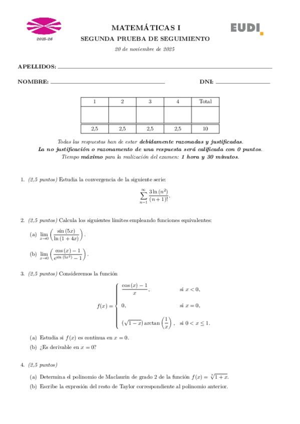 Pruebas de Seguimiento curso 2025/2026.