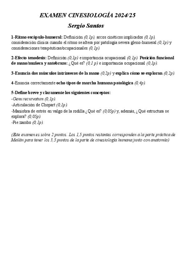 Exámen curso 2024/2025 de junio de cinesiología con Sergio. Es tal cual el examen porque nos dejó llevar las preguntas para casa, asi que seguro cambie algo los siguientes años.