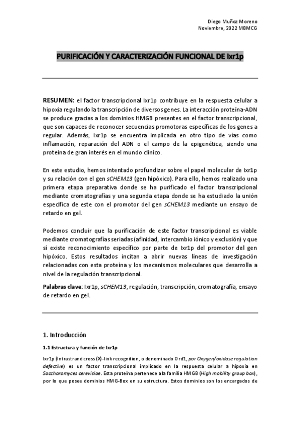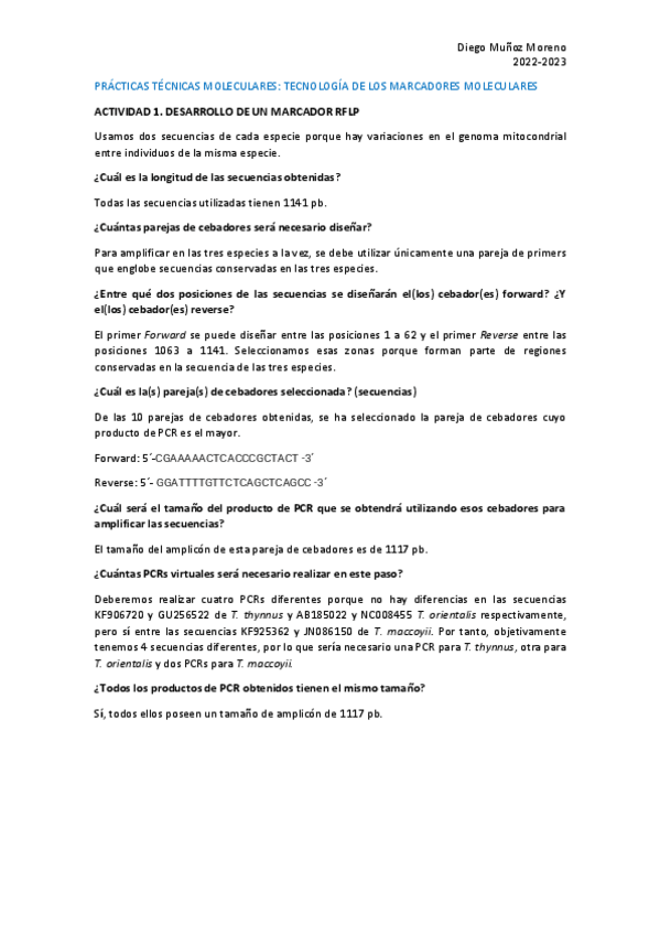 Se incluye el trabajo informático de MArcadores Moleculares, el ejercicio de Northern Blot y el trabajo extenso tipo paper