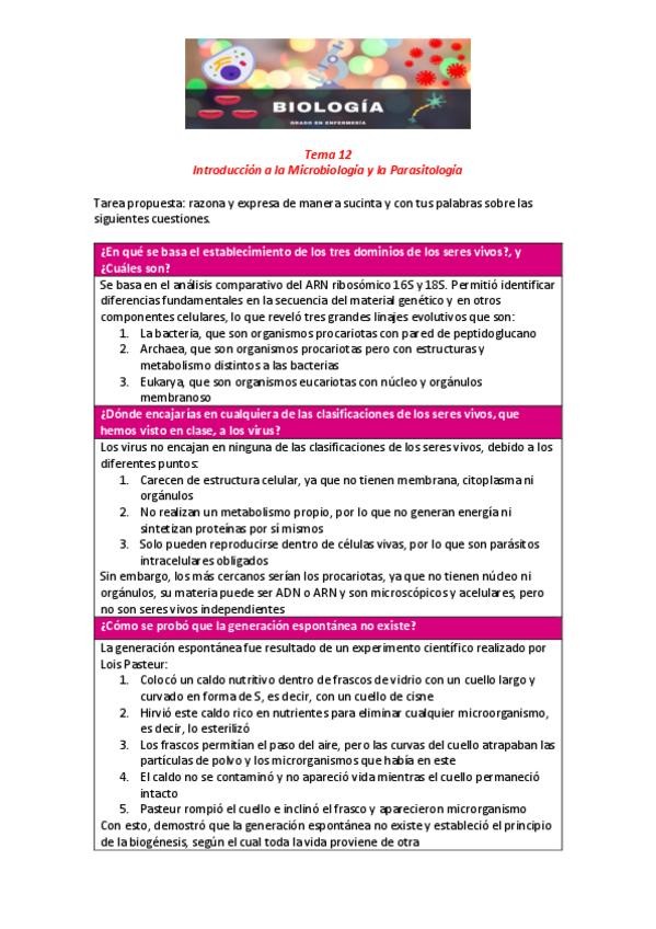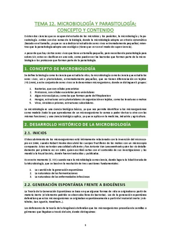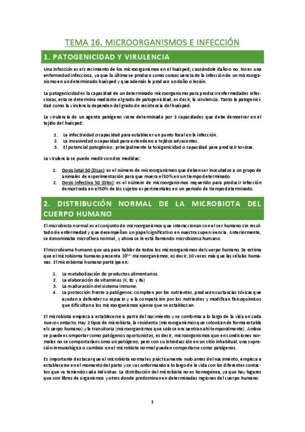 Lectura resumen tema 16, la microbiología médica y la microbiota humana
