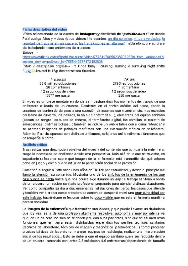 Trabajo individual sobre la enfermería en redes sociales.