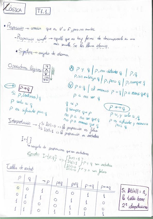 Apuntes del primer tema de la asignatura de Lógica