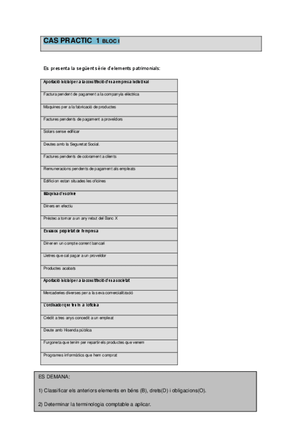 Exercicis BLOC I. Teoria de l'estructura patrimonial