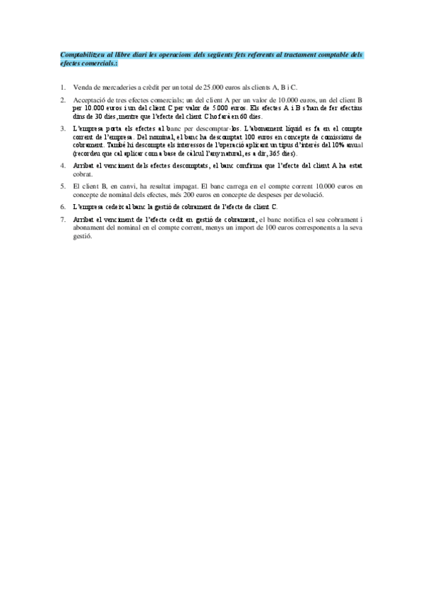 Exercicis BLOC III. Operacions empresarials i el cicle comptable