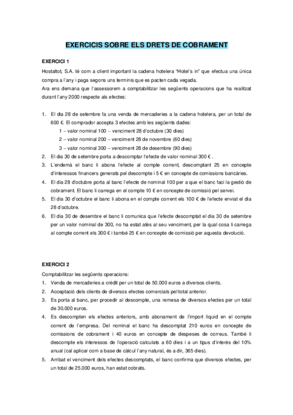 Exercicis BLOC II. La instrumentació comptable
