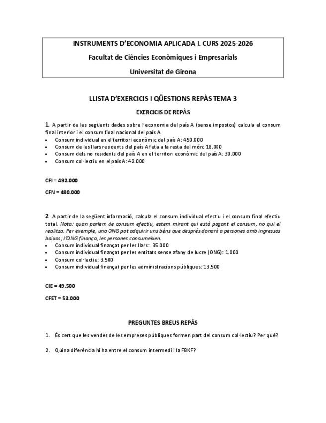 Exercicis per repassar tema 3 instruments d'economia