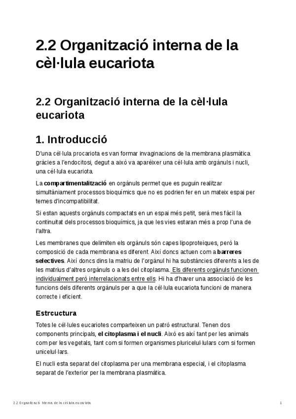 Estructura y organización de la célula eucariota.