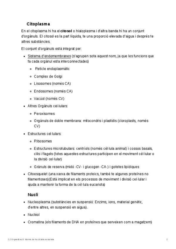 Estructura y organización de la célula eucariota.