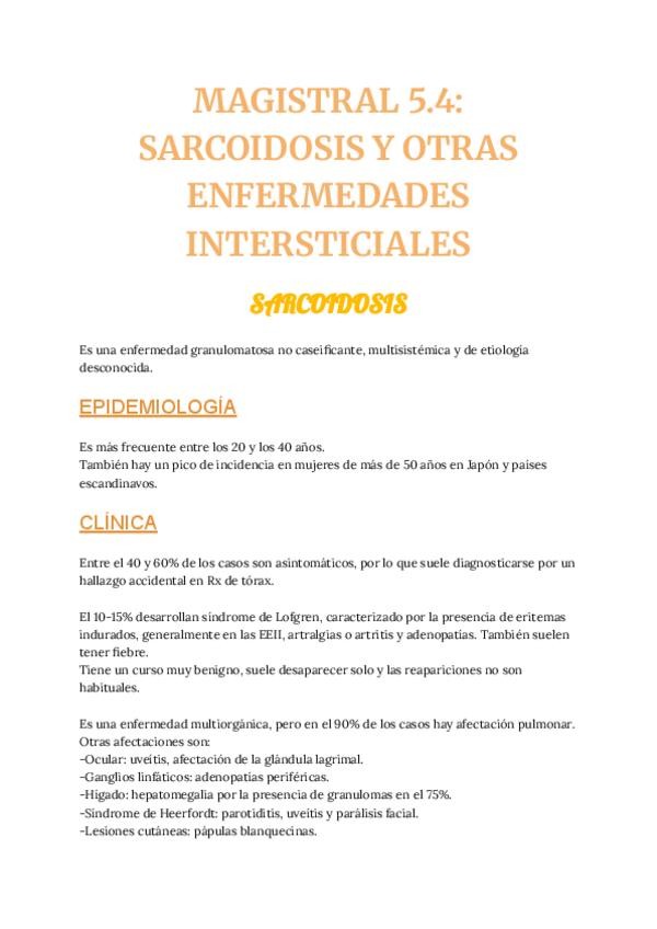 He publicado nuevos apuntes de 4º Sistemas de provisión, procesamiento y eliminación 5. La respiración y el aparato respiratorio: MAGISTRAL-5.4-SARCOIDOSIS-Y-OTRAS-ENFERMEDADES-INTERSTICIALES.pdf