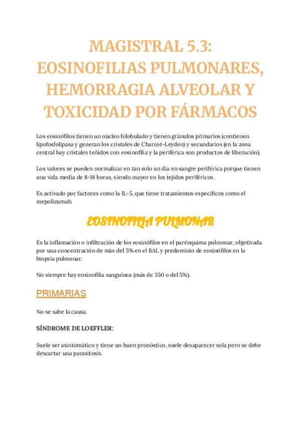 He publicado nuevos apuntes de 4º Sistemas de provisión, procesamiento y eliminación 5. La respiración y el aparato respiratorio: MAGISTRAL-5.3-EOSINOFILIAS-PULMONARES-HEMORRAGIA-ALVEOLAR-Y-TOXICIDAD-POR-FARMACOS.pdf