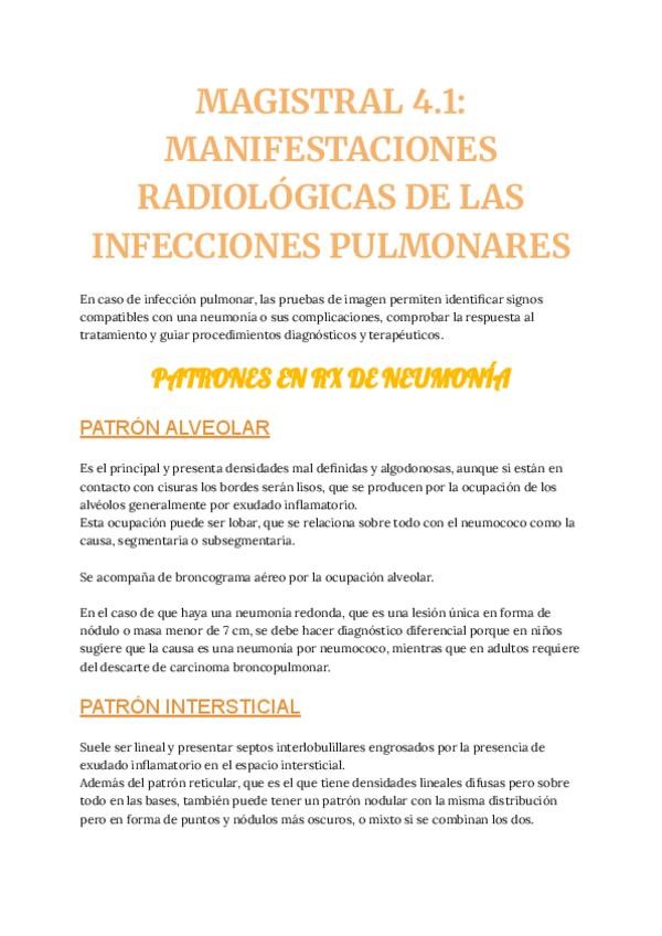 He publicado nuevos apuntes de 4º Sistemas de provisión, procesamiento y eliminación 5. La respiración y el aparato respiratorio: MAGISTRAL-4.1-MANIFESTACIONES-RADIOLOGICAS-DE-LAS-INFECCIONES-PULMONARES.pdf