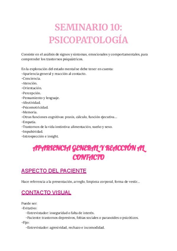 He publicado nuevos apuntes de 4º La conducta, el cerebro y los órganos de los sentidos 1. La conducta humana: SEMINARIO-10-PSICOPATOLOGIA.pdf