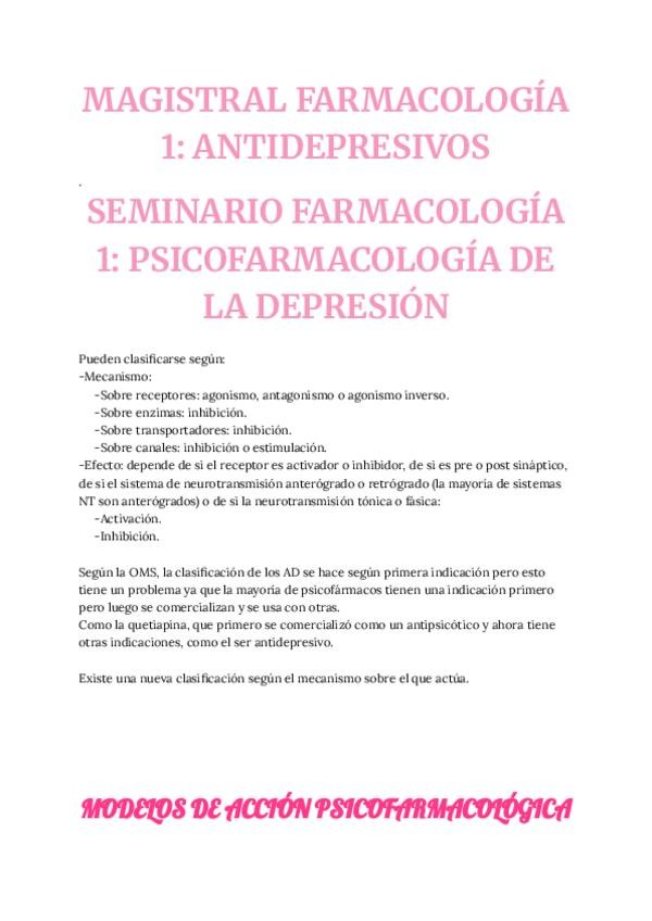 He publicado nuevos apuntes de 4º La conducta, el cerebro y los órganos de los sentidos 1. La conducta humana: MAGISTRAL-FARMACOLOGIA-1-ANTIDEPRESIVOS.-SEMINARIO-FARMACOLOGIA-1-PSICOFARMACOLOGIA-DE-LA-DEPRESION.pdf
