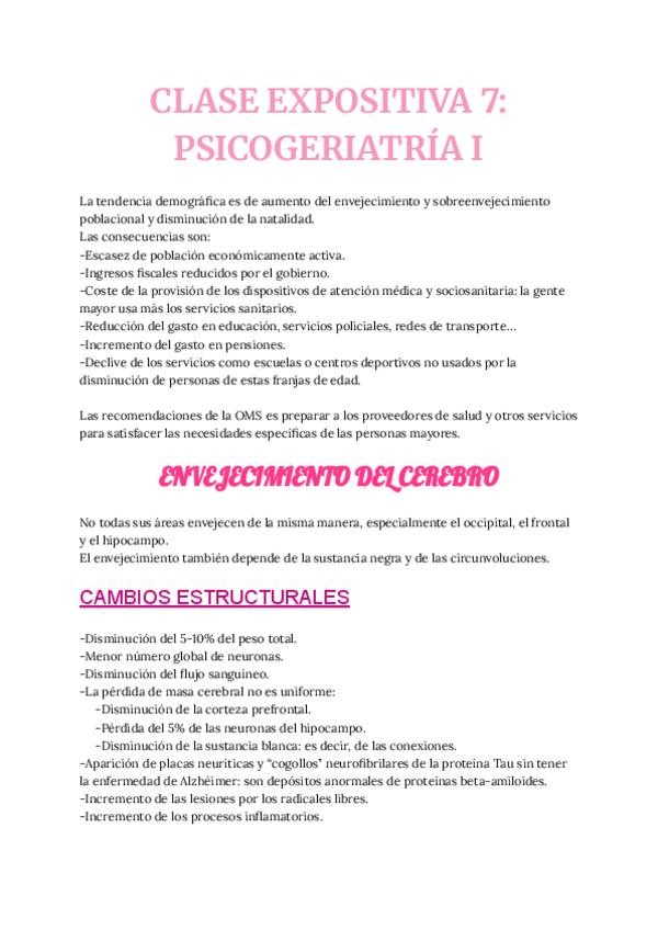 He publicado nuevos apuntes de 4º La conducta, el cerebro y los órganos de los sentidos 1. La conducta humana: CLASE-EXPOSITIVA-7-PSICOGERIATRIA-I.pdf