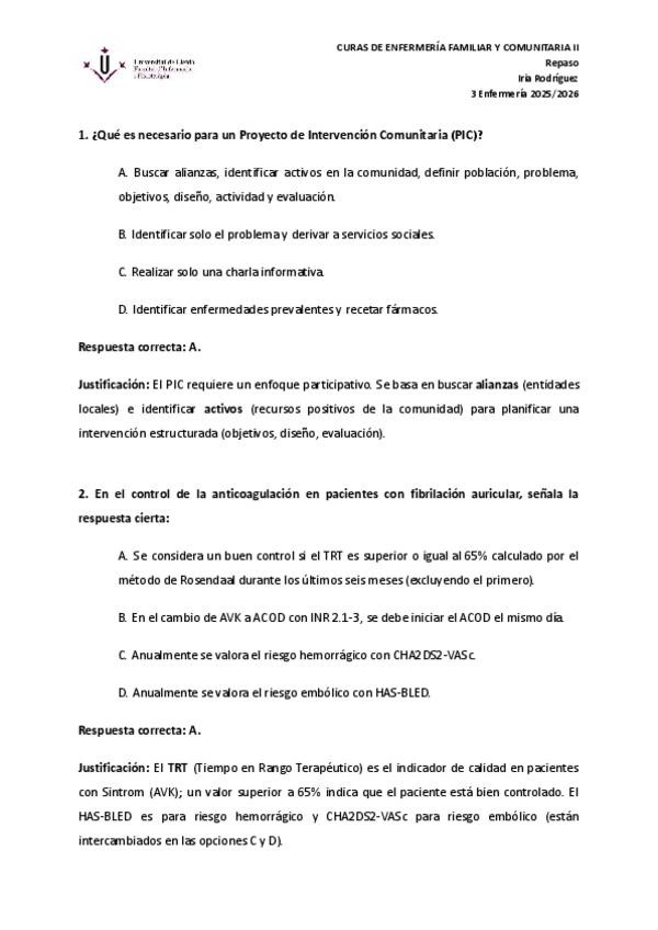 Preguntas con respuesta y justificación. Repaso temario en castellano. 2025/2026