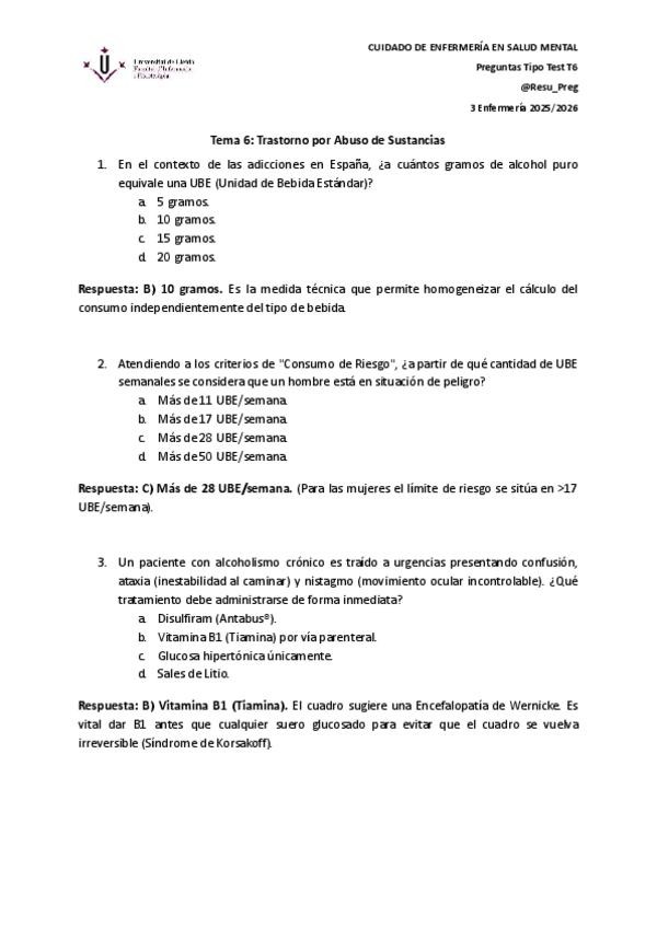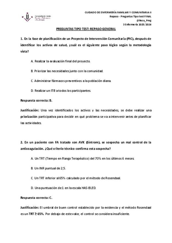 Preguntas tipo test, preparación examen. Resueltas y justificadas.