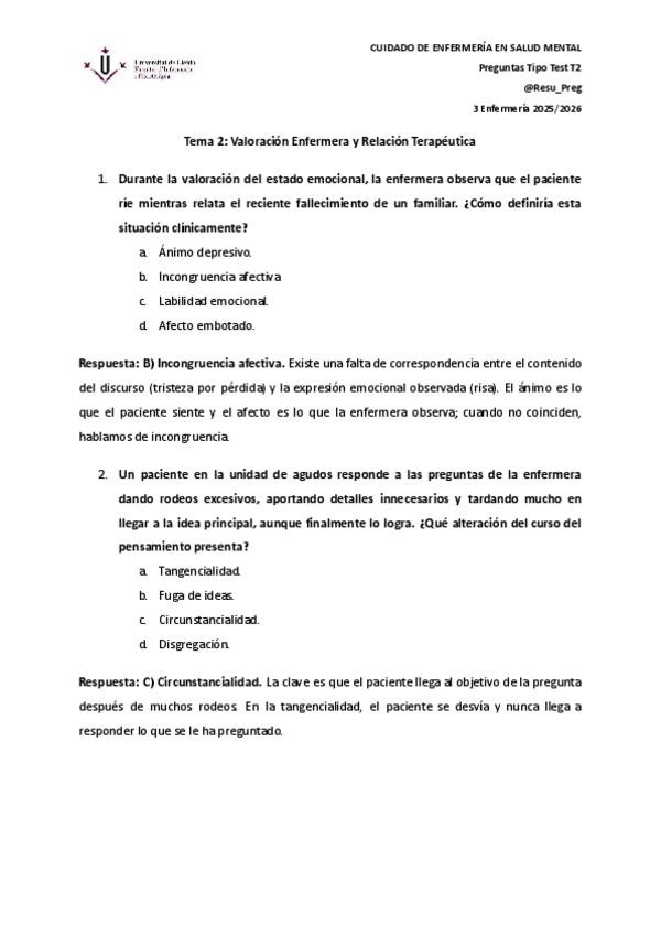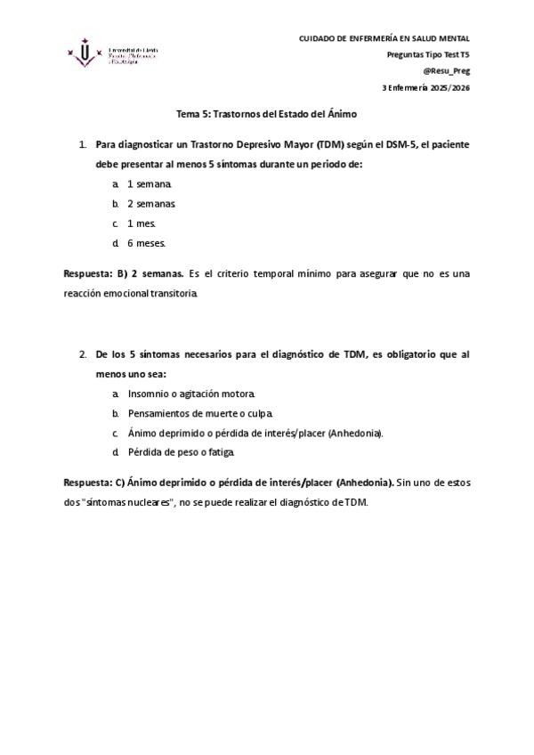 Pregunta tipo test Salud Mental