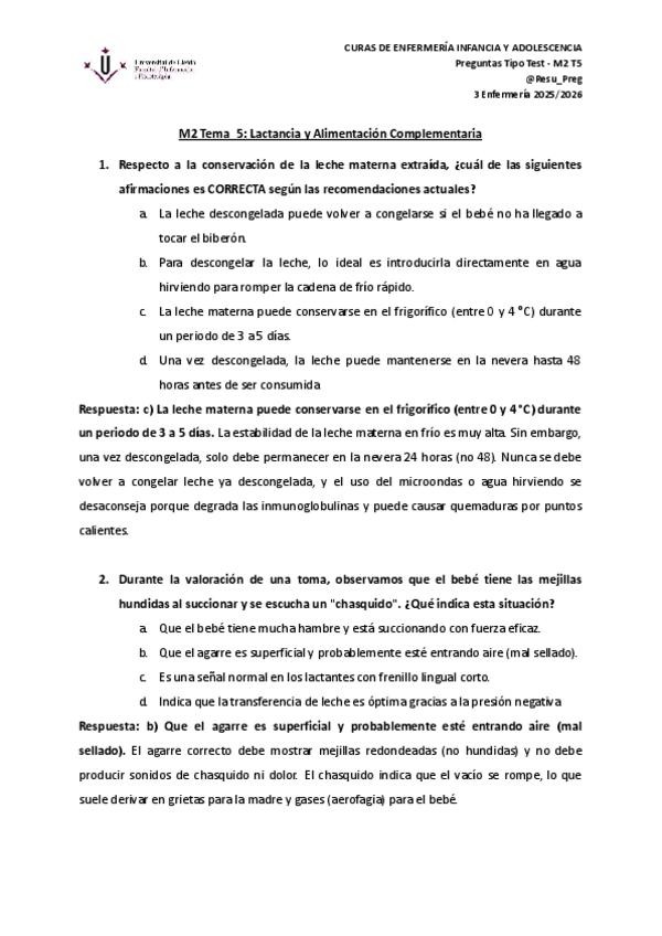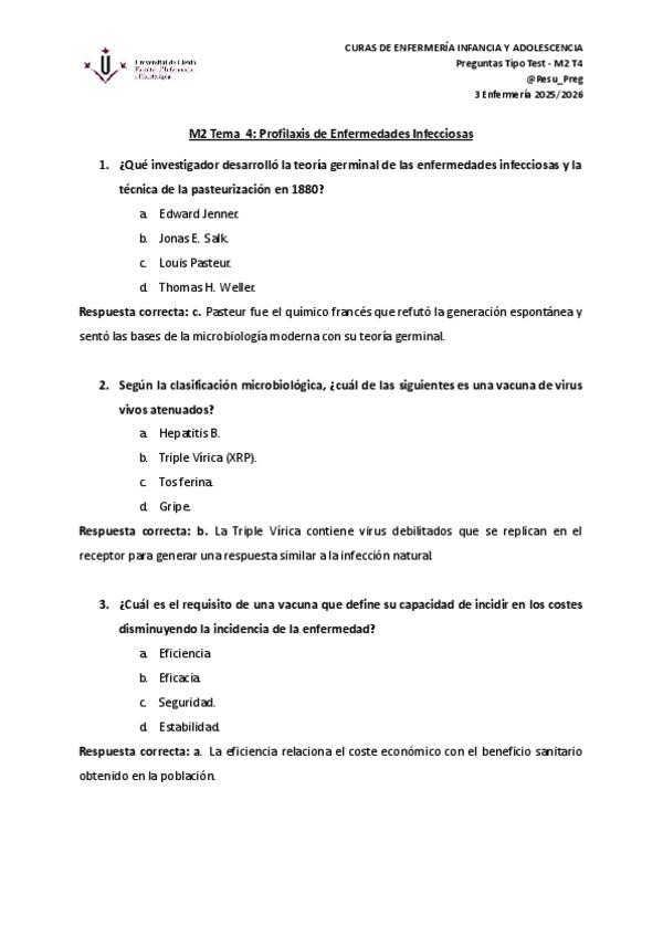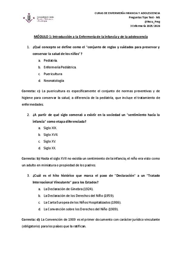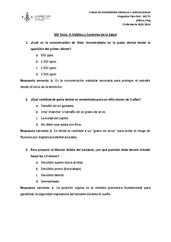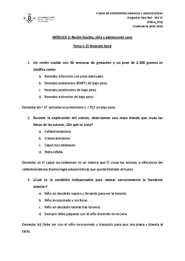 Pregunta tipo test Infancia