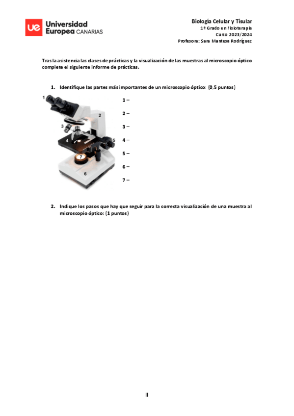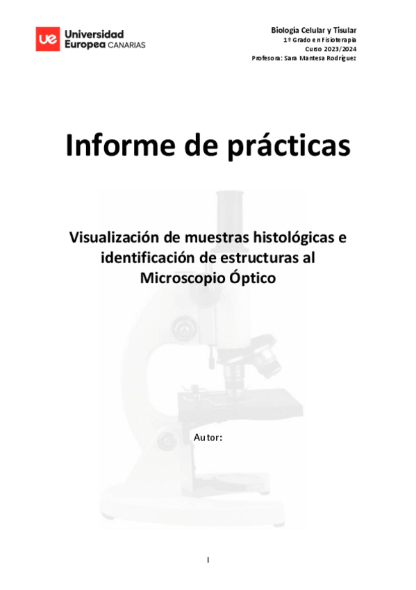INFORME DE PRÁCTICAS DE BIOLOGÍA CELULAR Y TISULAR /1 DE FISIOTERAPIA