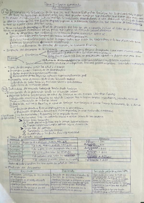 Contenidos de mercado de trabajo: Definición de desempleo, tasa natural de desempleo y tipos de desempleo que la conforman, otros tipos de desempleo, clasificación de personas según su situación laboral (población activa, ocupada...), tasas de medición de