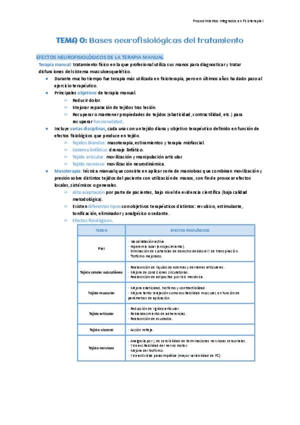 Procedimientos integrados en fisioterapia I primer parcial teoría