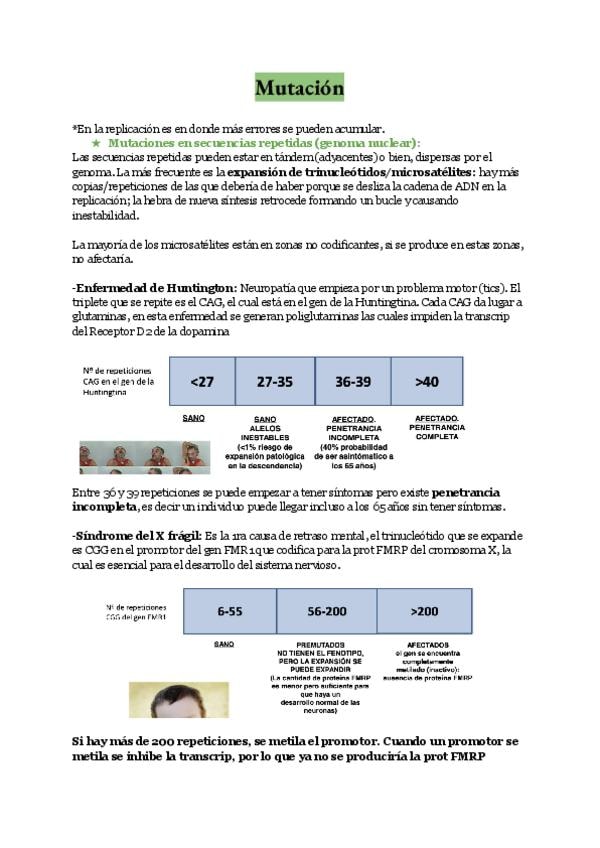 Tablas con todas las enfermedades, gen mutado, tipo de mutación, herencia, cromosoma... del parcial I de genética