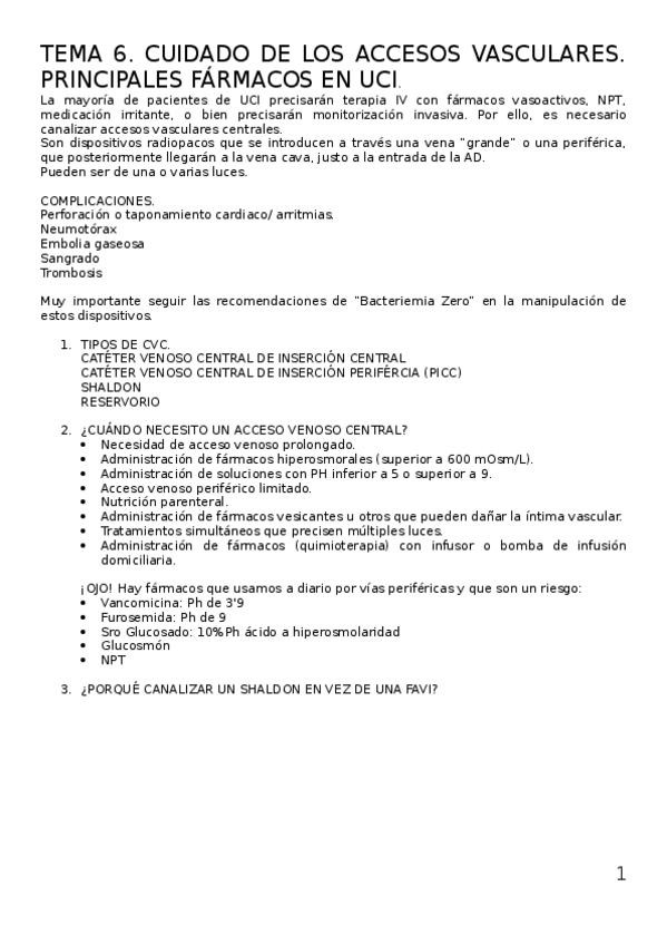 He publicado nuevos apuntes de 3º Enfermería Clínica IV: TEMA-6.-CUIDADO-DE-LOS-ACCESOS-VASCULARES.-PRINCIPALES-FARMACOS-EN-UCI..docx