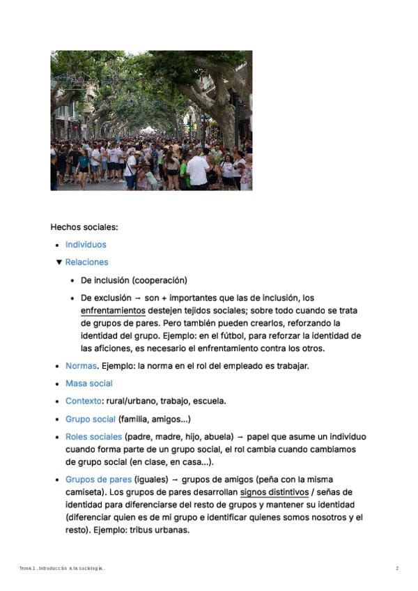 Introducción a la sociologia (qué es, para qué sirve...), hechos sociales, grupos sociales, formas de socialización, acción social y cambio social.