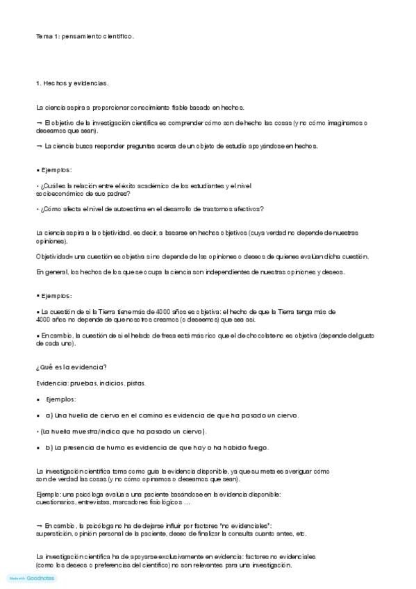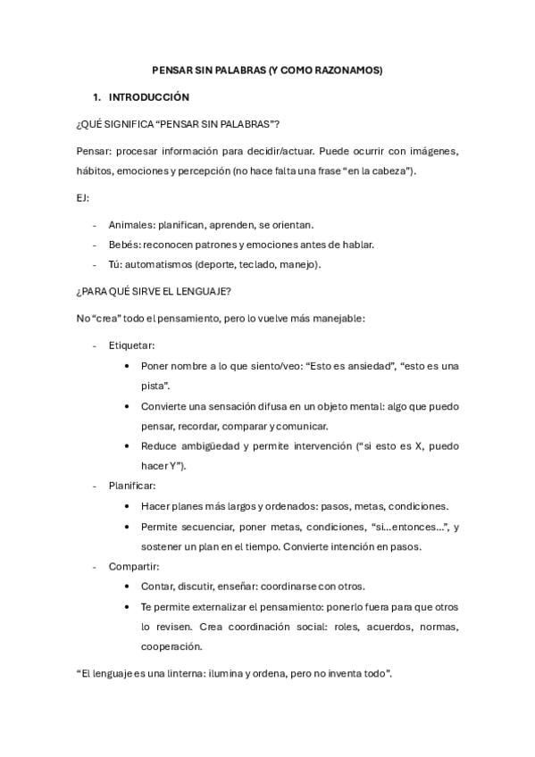 Apuntes del tema 1 de Pensamiento y Lenguaje del Grado de Psicología en la UE.