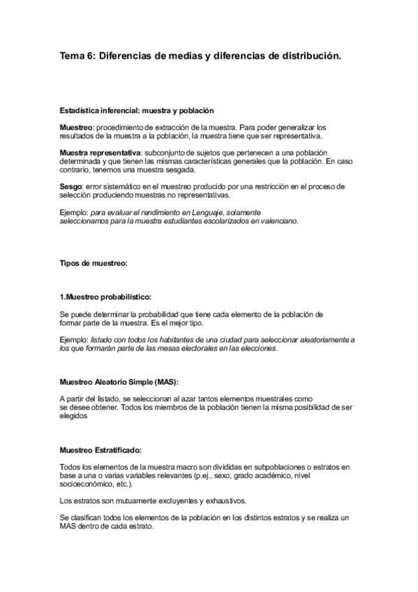 Apuntes del tema 6 de Estadística Aplicada a la Psicología del Grado de Psicología de la UE.