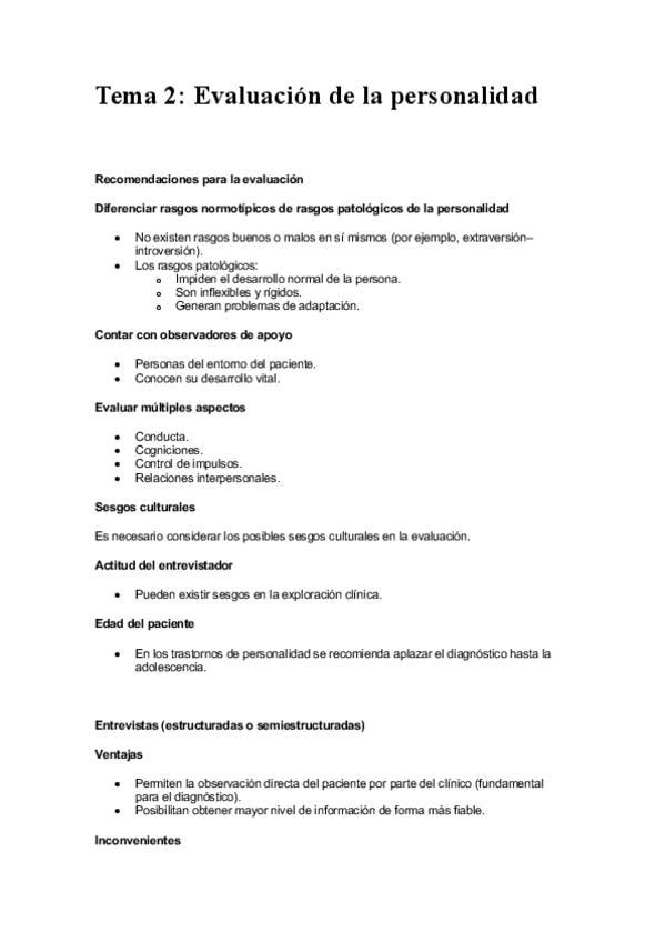 Apuntes del tema 2 de Psicodiagnóstico del Grado de Psicología en la UE.
