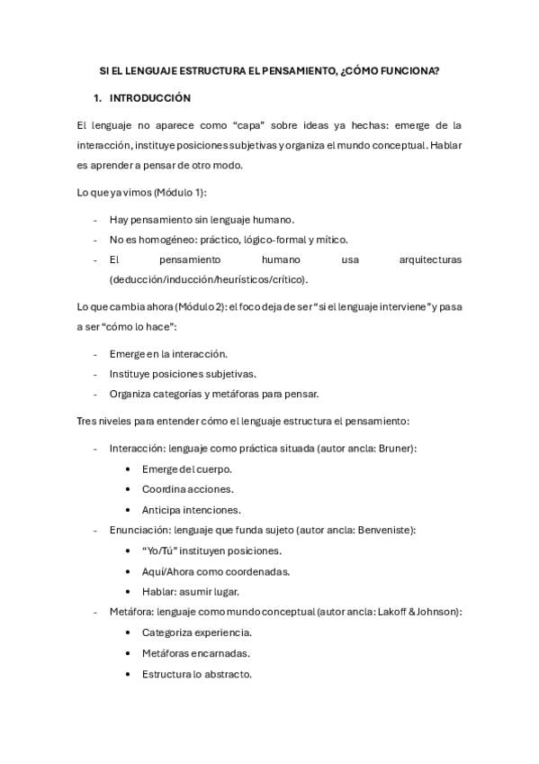 Apuntes del tema 2 de Pensamiento y Lenguaje del Grado de Psicología en la UE.