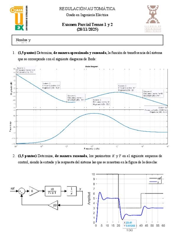 He publicado nuevos examenes de 3º Regulación Automática: Parciales Enunciados 2025/2026