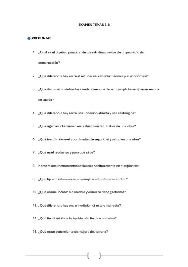 TEST Y PREGUNTAS CORTAS TEMAS DE 1 AL 8 DE PROCEDIMIENTOS DE CONSTRUCCIÓN.
