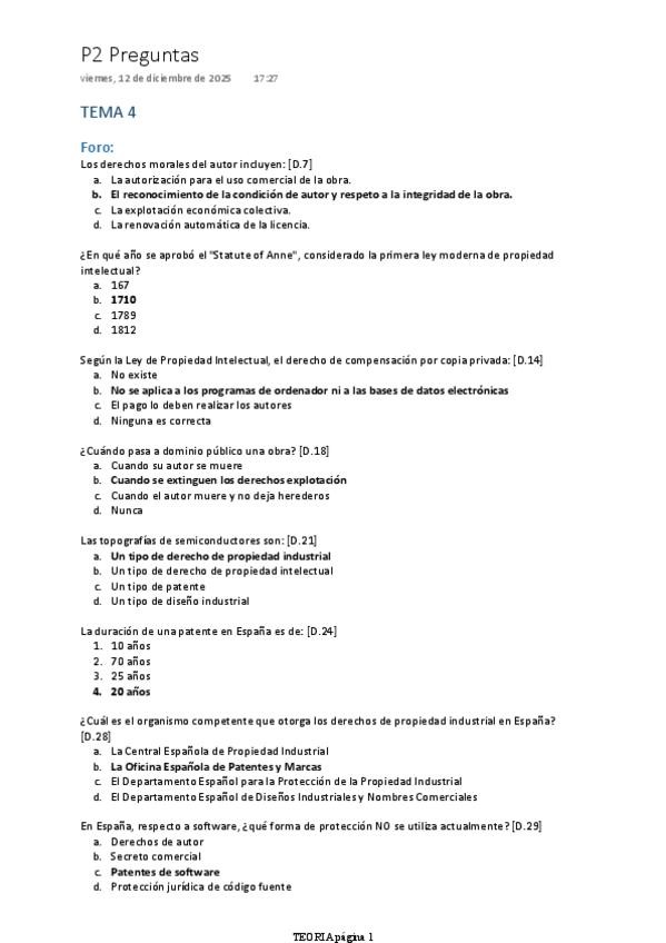 He cogido preguntas de los foros, un examen resuelto y he pedido a chat GPT que añada alguna pregunta mas con su respuesta correcta basándose en el contenido de las diapositivas , metiéndole las diapositivas de los tres temas para que añada preguntas . La
