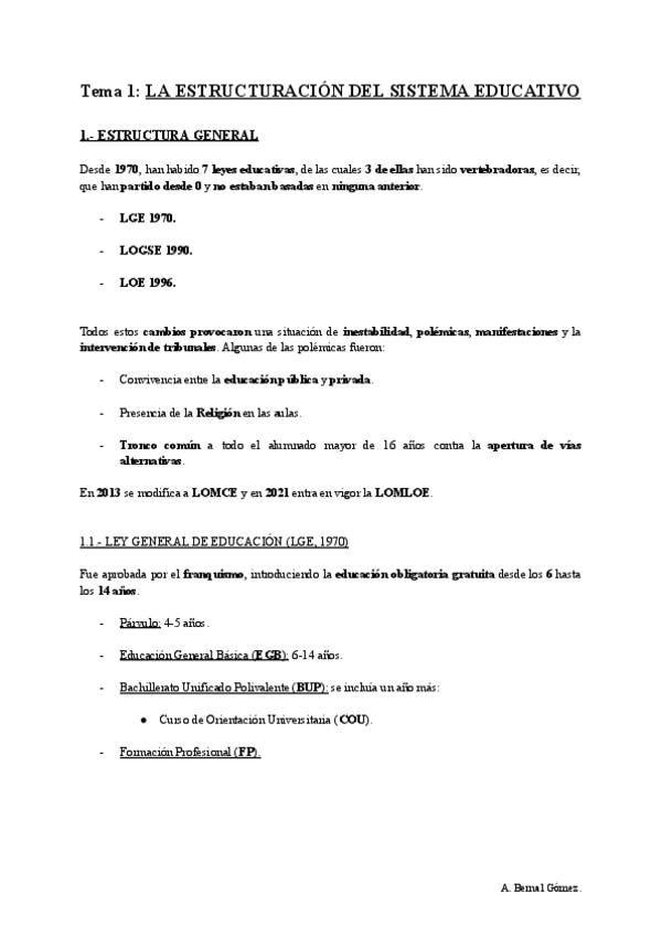 PEF - Tema 1_ LA ESTRUCTURACIÓN DEL SISTEMA EDUCATIVO