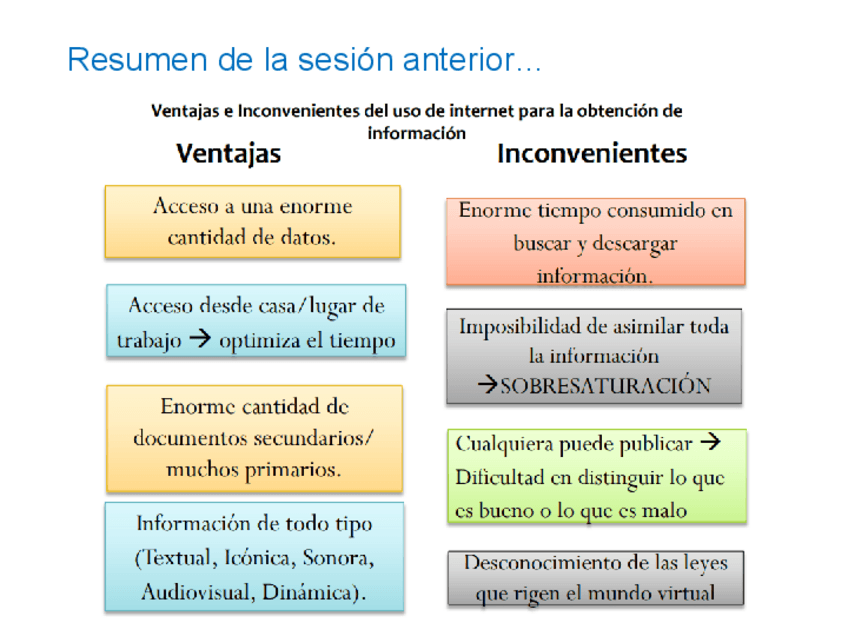 Las fuentes de información y el acceso a la información científica. Material complementario tema 1 y 2.