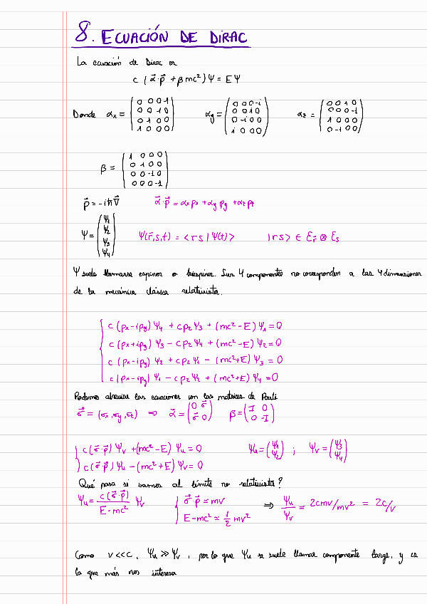 He publicado nuevos apuntes de 4º Mecánica Cuántica: 8-ECUACION-DE-DIRAC.pdf