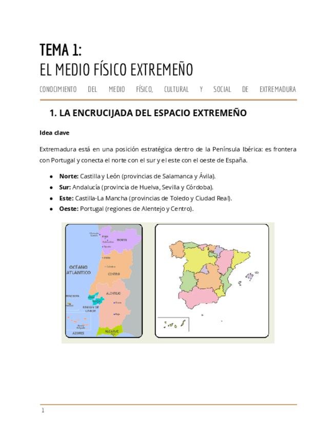He publicado nuevos apuntes de 3º Conocimiento del Medio Físico, Cultural y Social de Extremadura: Tema-1-el-medio-fisico-extremeno.pdf