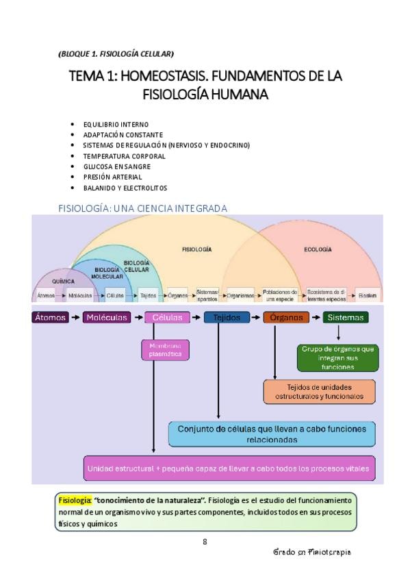 APUNTES COMPLETOS TEMA 1: INTRODUCCIÓN A LA HOMEOSTASIS Y FISIOLOGÍA HUMANA