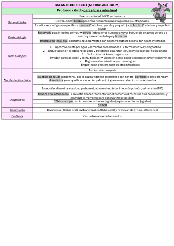 He publicado nuevos apuntes de 4º Parasitología: Tablas protozoos